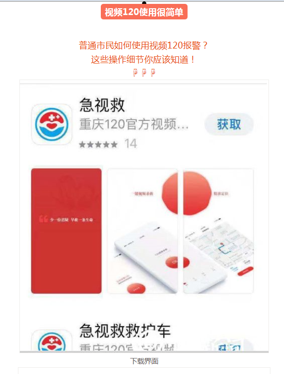 28日下午,视频120正式向重庆市民开启了下载权限,只要下载“急视救”APP,按照提示进行注册,普通人也可以利用视频120一键报警。
