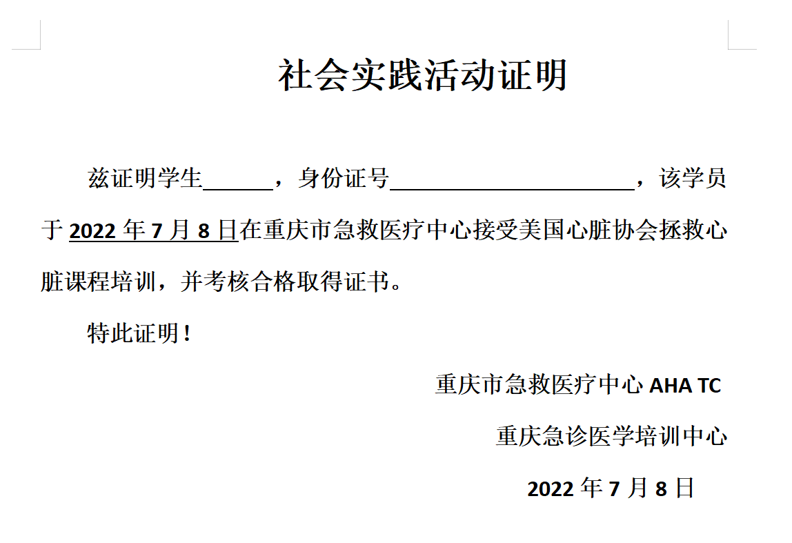 为了推广急救知识和技能,提高青少年应对突发情况的自救互救能力,重庆市急救医疗中心于2022年7月8日举办了美国心脏协会(AHA)拯救心脏(HS)国际证书认证青少年培训班。本次培训班共招收学员24人,主要来自重庆巴蜀常春藤学校、重庆市巴蜀中学校、重庆市南坪中学校等在校学生及家长。